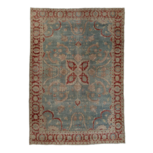 Blue & Red Antique Traditional Tabriz Rug - 9' x 13'1"