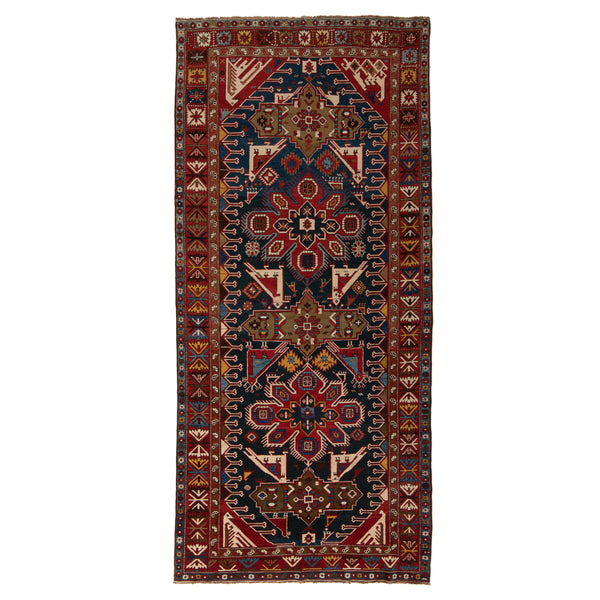 Red & Blue Antique Turkish Runner - 4'11'' x 10'11''