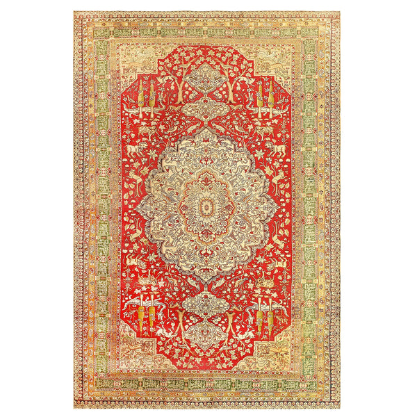 The Red Antique Traditional Turkish Keysari Rug is a stunning example of a traditional rug. Featuring a rich blend of red, beige, and green hues, this hand-knotted wool rug showcases intricate floral and vine motifs surrounding a central medallion design. Made in Turkey, this 6'2" x 8'8" rug is a true work of art, known for its craftsmanship and beauty. Add a touch of elegance to your space with this exquisite piece.