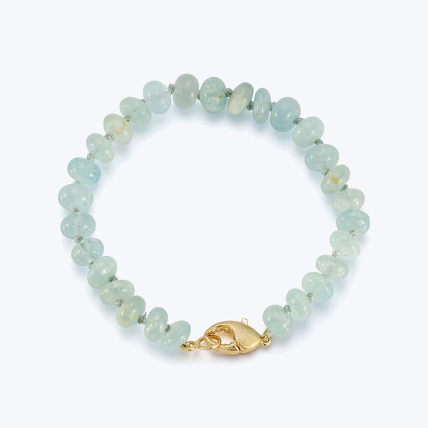 Tumbled aquamarine culminates with a cheeky crab claw clasp to create an elevated Aquamarine Beaded Bracelet. Aquamarine is a stone of courage. Associated with the throat chakra, it can helps us to gain insight, truth, and wisdom. Renna Jewelry showcases the highest quality pieces for the modern woman — nostalgically chic and eclectically elegant.