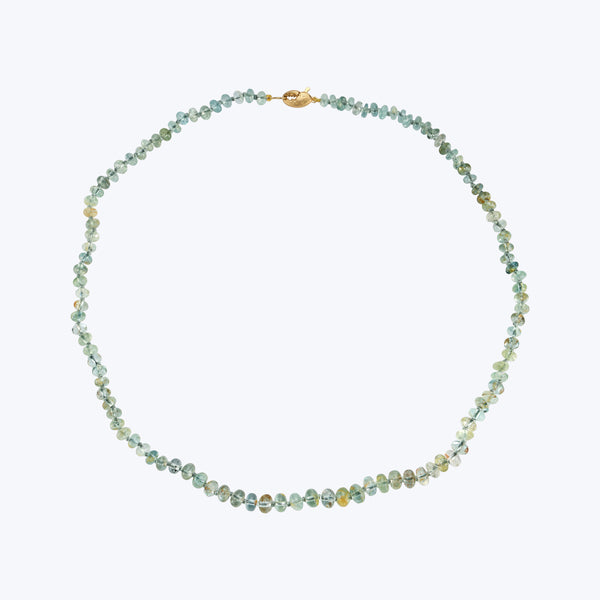 Tumbled aquamarine culminates with a cheeky crab claw clasp to create an elevated Aquamarine Beaded Necklace. Aquamarine is a stone of courage. Associated with the throat chakra, it can helps us to gain insight, truth, and wisdom. Renna Jewelry showcases the highest quality pieces for the modern woman — nostalgically chic and eclectically elegant. 33" Length
