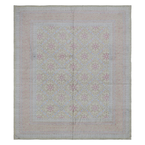Filled with floral designs in a soft pastel color palette, this Cream Traditional Wool Silk Blend Rug - 8'1" x 10' is a delightful addition to your home with its charming energy that is sure to catch the eye and delight the senses for years to come. This one-of-a-kind rug is hand-knotted from a blend of wool and silk for a unique duality of durability and softness with a hint of sheen courtesy of the shimmering silk. The central garden...
