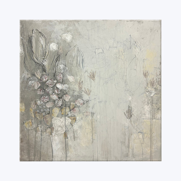 Elevate your interiors with original artwork. Created by Jill Krasner on stretched canvas, Arrangement is an original mixed media piece full of depth and intrigue. Its soothing neutral palette makes it perfect for bedroom or serene living room spaces. Jill Krasner’s art aims for immersion. Her multimedia works encourage the viewer to pause, observe, and explore.