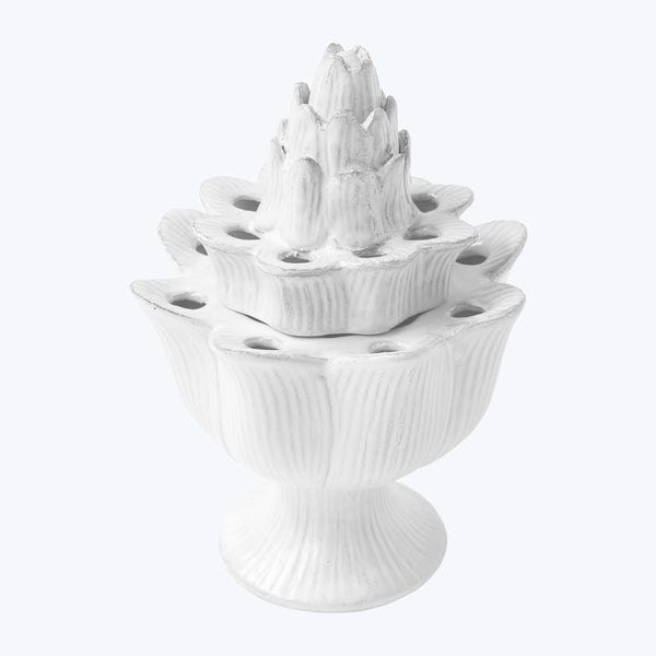Hand molded from black terracotta, each piece is finished in a milky-white glaze that highlights the unique character of the clay, celebrating its imperfections and ensuring that no two pieces are exactly alike. Romantically bohemian, yet practical for everyday use, these pieces are made in an antique Bastille workshop, historically home to Napoleon Bonaparte's own silversmith.
