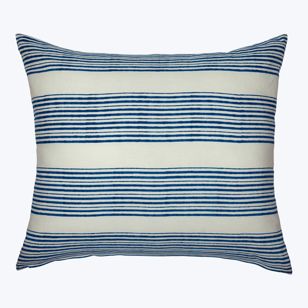 Discover the Arya King Euro Pillow by John Robshaw. Crafted in a beautiful linen and cotton blend, this elegant pillow features classic block printed stripes in alternating widths. Choose between indigo and sage hues or style both colors together. King Euros are oversized for a full, luxurious effect. Made in India.
