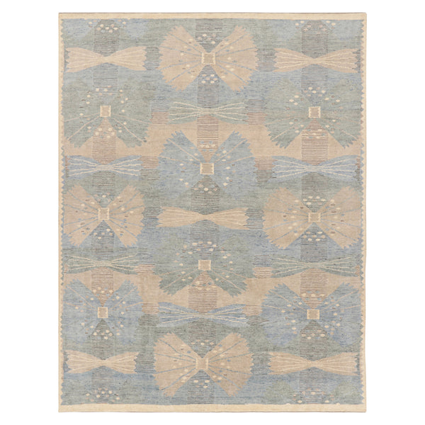 This contemporary rug combines Scandinavian design principles with traditional craftsmanship. Featuring a distinctive pattern in blue and brown hues, this hand-knotted piece offers both visual interest and practical comfort for various interior settings. Constructed from a durable wool and cotton blend, the rug provides a balance of softness and resilience. The wool content offers natural insulation and a plush feel, while the cotton contributes to its overall structure and strength. Each rug is hand-knotted in India, a process that ensures...