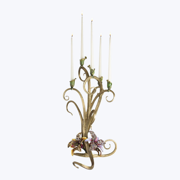 Brass and pewter with a brass ox finish, hand-enameled and hand-set with Swarovski® crystals. Imported base; hand decorated in Rhode Island.