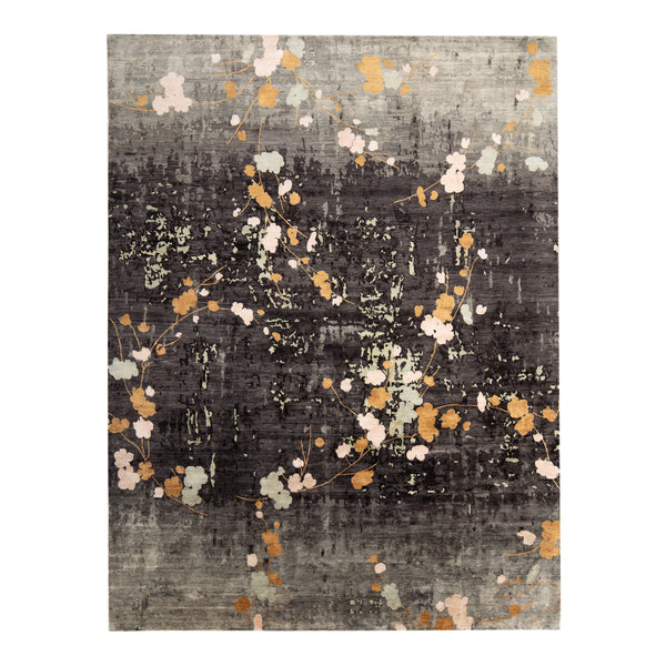 The Aurora Contemporary Tibetan Silk Rug combines traditional craftsmanship with modern design. This 8' x 10' rug is hand-knotted from 100% silk in Nepal, offering both luxury and durability. The rug features an Earth color palette, primarily a light, textured beige background. This subtle base is complemented by a flowing, nature-inspired pattern of slender branches and scattered blossom-like clusters in a deeper shade of brown-grey. The design provides visual depth and movement without dominating a space. The silk material gives...