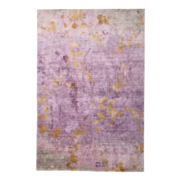 The Aurora Contemporary Tibetan Silk Rug combines traditional craftsmanship with modern design. This 8' x 10' rug is hand-knotted from 100% silk in Nepal, offering both luxury and durability. The rug features an Earth color palette, primarily a light, textured beige background. This subtle base is complemented by a flowing, nature-inspired pattern of slender branches and scattered blossom-like clusters in a deeper shade of brown-grey. The design provides visual depth and movement without dominating a space. The silk material gives...