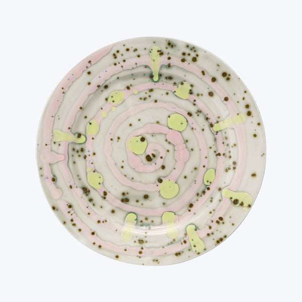 Exquisitely one-of-a-kind, the Autumn Dessert Plate brings your eye directly to the center with a pale pink swirl and soft green-colored spots that decorate the delicate surface. Inspired by the seasons, the Autumn Porcelain Dinnerware Collection showcases the ambiance of a whimsical autumnal season on your table. Originating from Italy, Coralla Maiuri is a world-renowned artist who creates hand-crafted dinnerware and home decor inspired by natural elements.