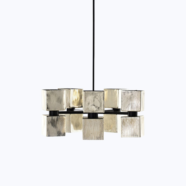 Discover the industrial beauty of the Ava Large Chandelier by Four Hands. Featuring handblown glass in an aged metallic finish, the Ava cements its raw elegance with primitive shaping. This eye-catching fixture offers an adjustable height from 26" to 41." Not compatible with sloped ceilings.