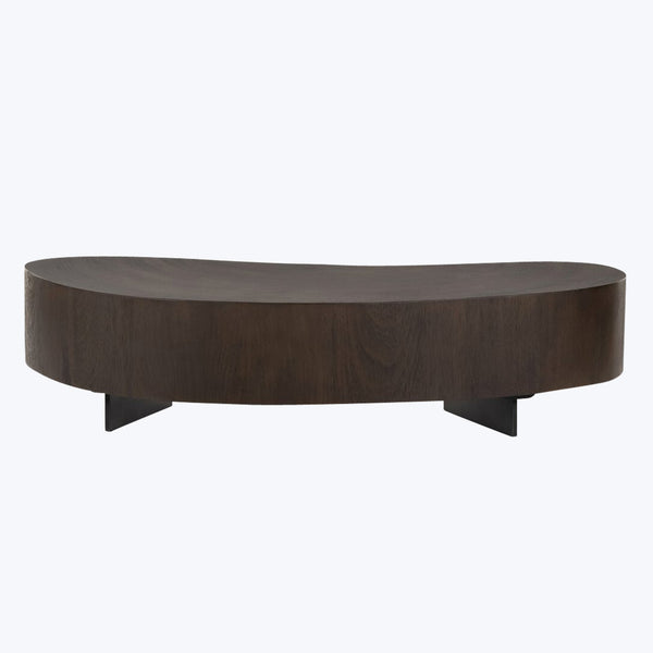 Make a statement with the Avett Coffee Table by Four Hands. This stunning piece is crafted in oyster-cut Guanacaste veneer and features two kidney-shaped tables in varying heights, which are combined for a beautifully layered look. A dark gunmetal-finished base offers an industrial contrast to the tableĆs rich wood. A striking, conversation-starting centerpiece designed to elevate modern interiors. Available in bleached and smoked Guanacaste veneer. Tables sold separately or as a set. The tall table measures 49.5" x 24" x...