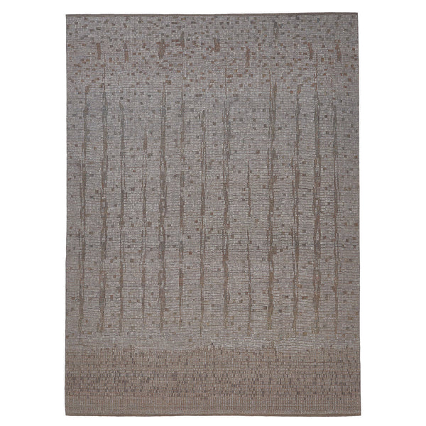 Brown Stelle Transitional Wool Rug - 9' x 12' is hand-embroidered and subtly textured with a hi-low effect that intentionally enhances the large-format compositions of the design. Woven with multi-dyed yarn, the palette offers a subtle yet complex voice to the repetitive textile patterns, offering the next wave of contemporary rug design.