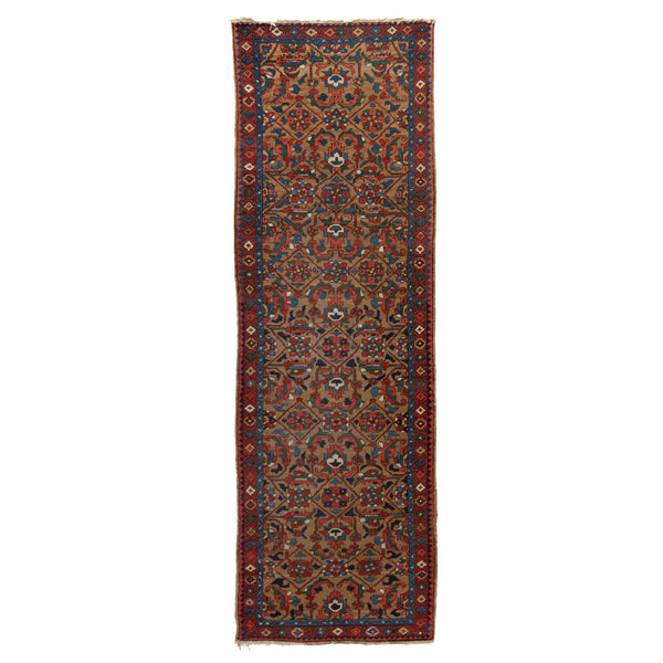 Bold, striking, and crafted to perfection, this hand-knotted wool runner from Turkey is not just a rug—it's an expression of timeless style. Measuring 3'1" in width and stretching over 10 feet in length, it transforms narrow spaces with a touch of warmth and sophistication. Its slender silhouette seamlessly fits hallways, entryways, and transitional spaces, marrying aesthetic grace with functional protection for your floors. A dance of deep red, rich rust, muted blue, and warm cream unfolds across its surface, laid...