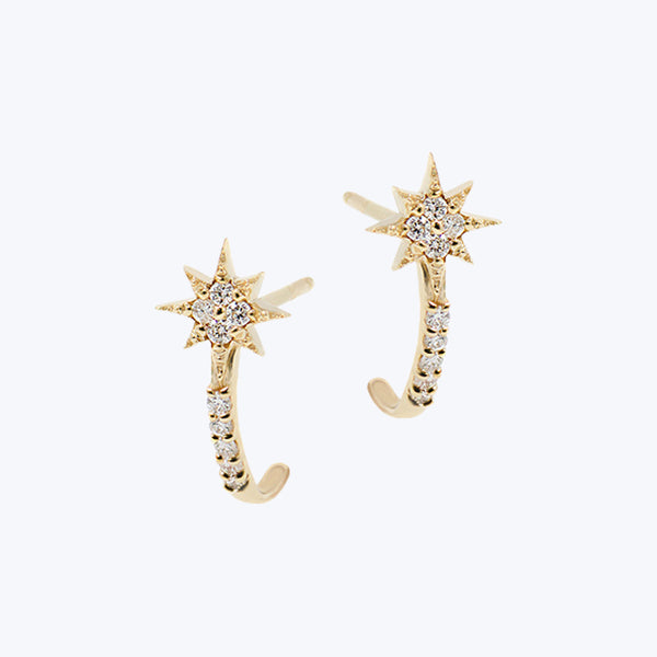 Brilliant micro diamonds are set within a mini star and mounted on gold posts with a pavé half hoop. Inspired by the Northern Star, these dainty earrings are a great staple to layer or for someone who likes minimal pieces.Earring measures 6mm x 13mm / 1/4" x 1/2". Fasten with a small butterfly back From its inception, Anzie Jewelry has been a celebration of life and color. Named after its founder, Anzie Stein, this collection of fine jewelry is best...