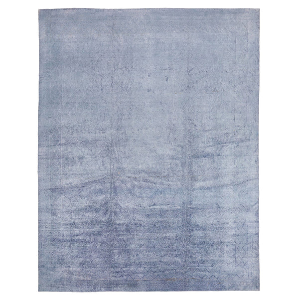 A calming shade of periwinkle blue and a subtle traditional motif makes this art silk rug a wonder to behold.