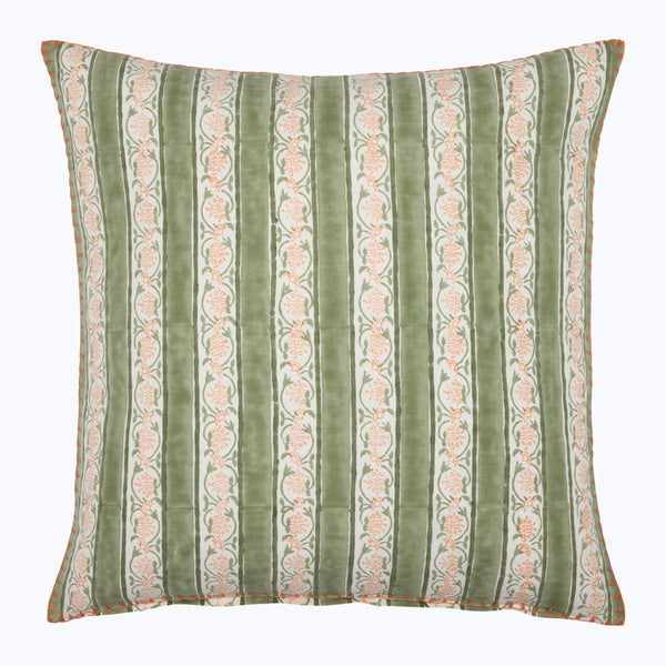SpecificationsHand block printed, printed on both sides. Hand stitched edging in tangerine. Hidden zipper closure.