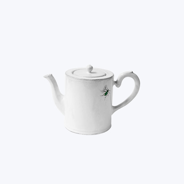 A John Derian x Astier de Villatte collaboration, this ceramic Beetle teapot is handmade in an antique Bastille workshop in Paris Ñ putting forth a one-of-a-kind object both romantically bohemian and practical in its everyday use. Hand-molded from black terracotta and finished in a milky-white glaze that highlights the unique character of the clay, this ceramic piece is then emblazoned with the iconic work of decoupage artist John Derian, showcasing the visually stimulating beauty of the natural world through simple...