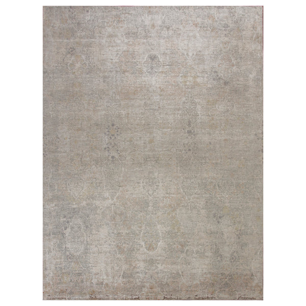 This large contemporary rug measures 9'2" x 12'1", offering substantial coverage for various living spaces. Crafted from 100% silk, the rug features a soft texture and a subtle luster. It is hand-knotted in India, reflecting traditional craftsmanship combined with a modern aesthetic. The design presents a muted Beige Pink color palette. The surface displays a distressed finish, integrating faded traditional motifs into a contemporary pattern. This allows the rug to complement both modern and transitional interior designs, adding depth without...