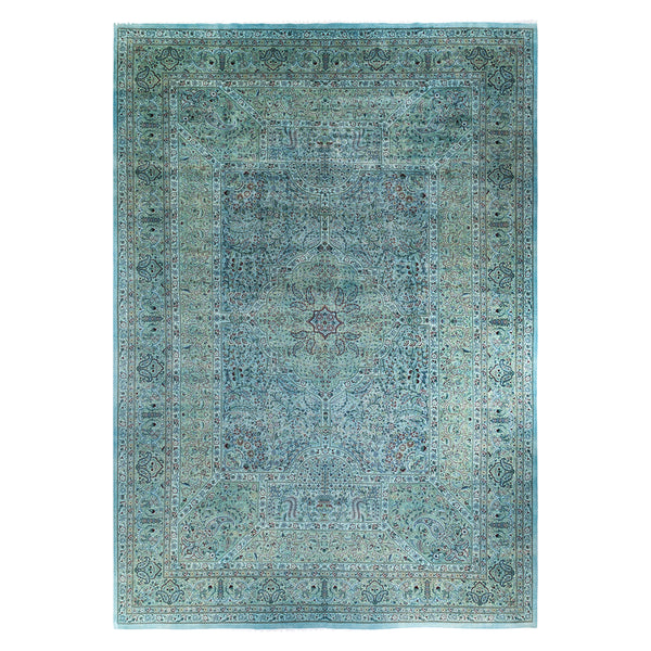 This large Blue Overdyed Wool Rug measures 12'1" x 17'10", providing a substantial area coverage suitable for spacious interiors. The rug is crafted from wool and features a hand-knotted construction, demonstrating traditional rug-making expertise from Pakistan. The overdyed process imparts a distinct blue color to this rug, characterized by subtle tonal variations and a softened, aged appearance. This treatment mutes the original traditional pattern, allowing intricate motifs, including a central medallion and ornate borders, to show through. The combination results...