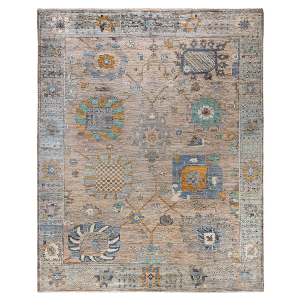 This Beige Traditional Oushak Wool Rug measures 7 feet 11 inches by 9 feet 10 inches, providing a significant area for various room configurations. As a hand-knotted rug from Pakistan, it reflects traditional artisan craftsmanship in its construction. The rug is made from 100% wool, offering a durable yet soft surface. Wool is a natural fiber known for its resilience and ability to maintain its appearance over time, making this rug suitable for high-traffic areas in both residential and commercial...