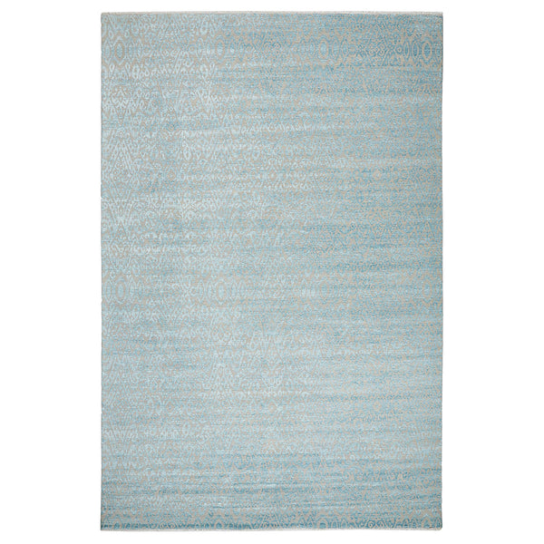 A light blue floral design shines through the neutral foundation of this wool rug.
