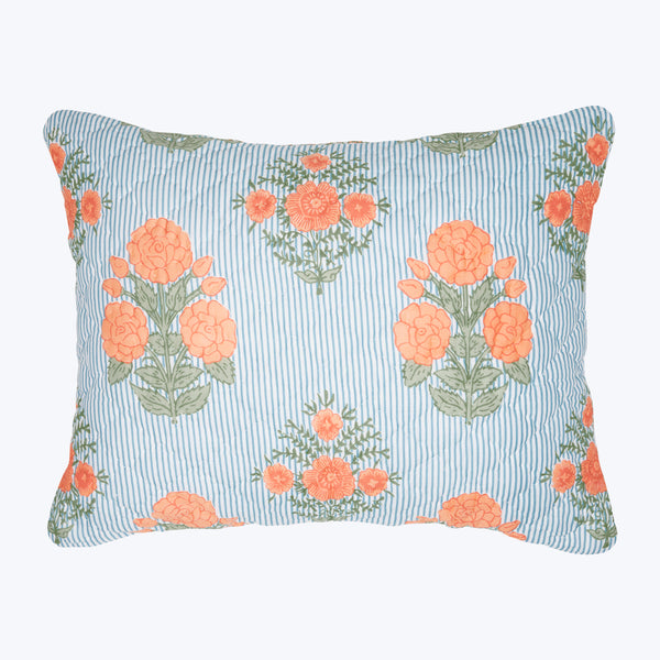 Add art and design to your bedroom with the Bipin Sham. Featuring orange and green flower motifs on a striped background, it reverses to reveal a coordinated print of smaller florals on the back. Made from pure cotton voile, this sham is smooth and lightweight. *Shams sold individually. Featuring a distinct balance of bold and bright from old-world traditions and new-world style, John Robshaw displays an updated spin on traditional, handmade textiles with a vibrant mix of sophistication and romantic...