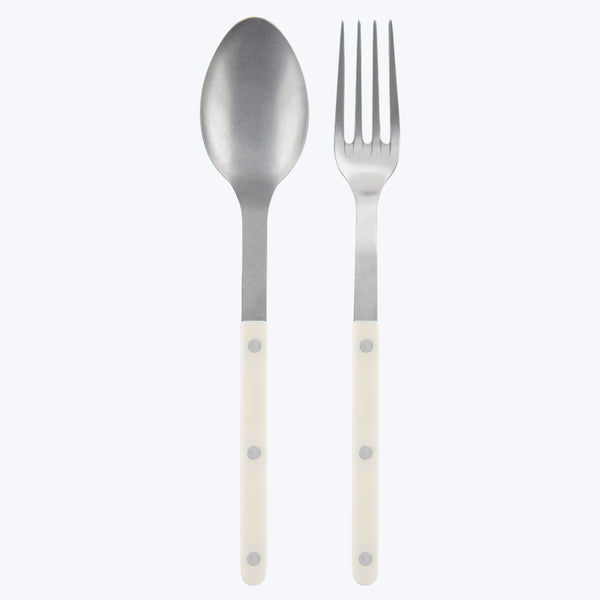 The Bistrot Vintage Finish 2-Piece Serving Set is true to its namesake with design inspiration coming from the Sabre team's favorite restaurants, cafes, and terraces in France. When designing this serving set, Sabre wanted to faithfully capture the bistro atmosphere while adding a modern touch: the styling is simple, the rivets are visible, and each color and material stand out nicely. These 18/10 stainless steel serving utensils feature a vintage finish for a more authentic and rustic appeal. This 2-piece...