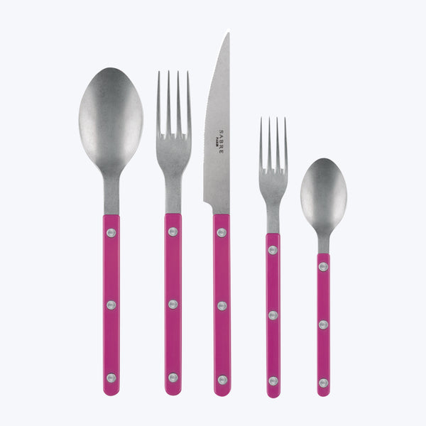 The Bistrot Vintage Finish 5-Piece Flatware is true to its namesake with design inspiration coming from the Sabre team's favorite restaurants, cafes, and terraces in France. When designing this cutlery, Sabre wanted to faithfully capture the bistro atmosphere while adding a modern touch: the styling is simple, the rivets are visible, and each color and material stand out nicely. These 18/10 stainless steel utensils feature a vintage finish for a more authentic and rustic appeal. This 5-piece Sabre flatware set...