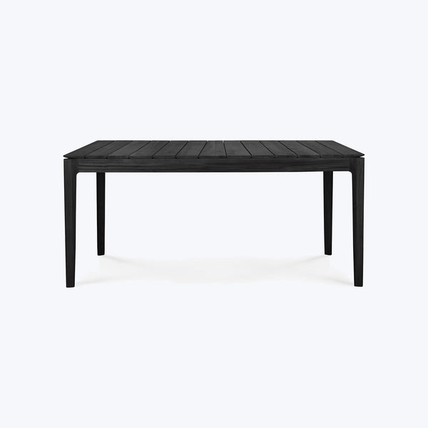 Made in Indonesia, the Black Bok Outdoor Dining Table by Ethnicraft combines sculptural elegance with modern craftsmanship. Offered in multiple sizes, this table features a solid teak wood tabletop with a sleek black stain, designed for durability and style. Teak is naturally moisture and rot-resistant, ensuring longevity, though it will patina over time for a unique, weathered look. FSC-certified, the Black Bok Dining Table is an eco-friendly choice, offering both beauty and sustainability. The solid wood construction provides a rock-solid foundation...