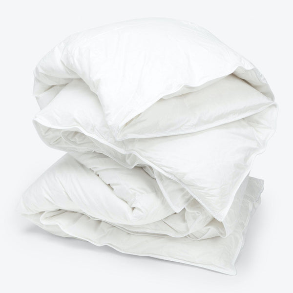 Care instructionsTo ensure the maximum benefit from your down products please follow our simple instructions: Pillows and comforters should always be used inside a cover. • Pillows should always have a protector in addition to a cover. Comforters may be spot cleaned for spills with a mild detergent and aired out as needed. • While frequent washing is not advised, down may be washed or dry cleaned. We recommend a maximum of 1-3 washes per year. • Dry cleaning should be only performed by a company that is experienced with down products, as dirty cleaning fluid will cause the down to clump, lose its lofting ability and occasionally develop a mild odor. • We recommend washing only in a front-loading commercial capacity washer. Machines with agitators are too rough and will tear the baffles on comforters. Use a low sudsing mild detergent or a product specifically designed for washing down products. NEVER use any bleaching agents or spot removing products as this can break down the feathers causing them to lose their lofting ability. Place down in a large capacity dryer on the lowest heat setting and dry for several hours. This step is very important because if down is not thoroughly dried, it may develop mold and or odors. NEVER dry on a high heat setting as this could also damage the down. Tennis balls or dryer balls may also be used when drying to help fluff and bring back the loft to the down as it dries.