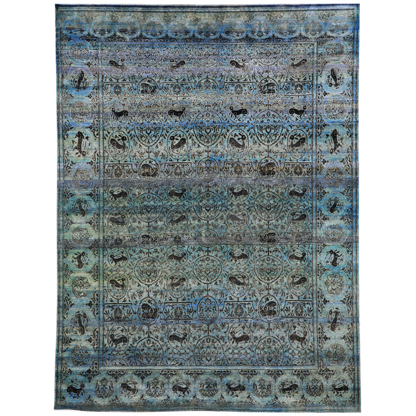 This Blue Alchemy Traditional Silk Rug measures 7 feet 9 inches by 10 feet 7 inches, providing a substantial area rug for various interior designs. As part of the Alchemy Rug Collection, this piece is hand-knotted in India, reflecting skilled craftsmanship and attention to detail. Crafted entirely from silk, the rug offers a smooth texture and a natural sheen that adapts to different lighting conditions. The hand-knotted construction ensures a durable and high-quality finish. Its design features a predominantly blue...
