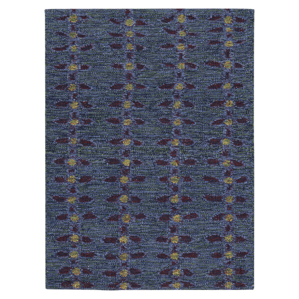 Blue Flatweave Swedish Inspired Wool Rug - 3'7" x 4'11"