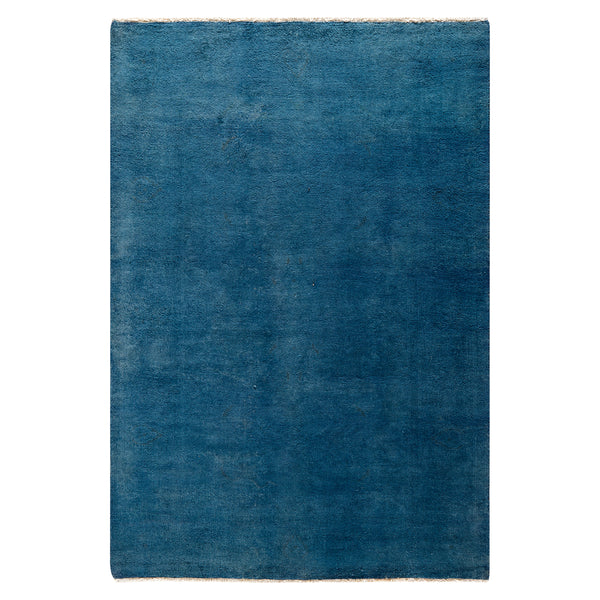 This blue overdyed wool rug offers a deep, saturated color to enhance various interior designs. Measuring 4'2" x 5'10", this hand-knotted area rug provides both functionality and style for your home. Crafted from durable wool, this rug is built to withstand daily use while offering a soft texture underfoot. The natural properties of wool contribute to its longevity and comfort. Each rug is hand-knotted by skilled artisans in Pakistan, showcasing traditional techniques and ensuring a unique, quality piece. The overdyed...