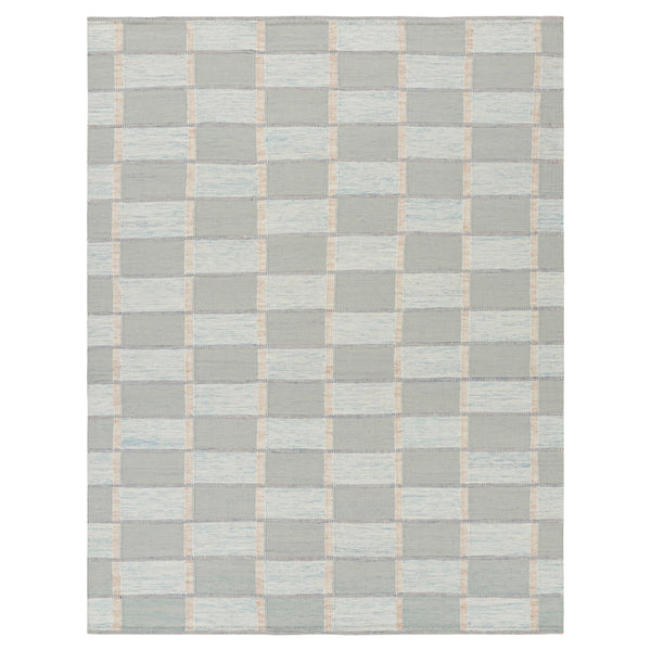 The Blue Swedish Inspired Flatweave Wool rug is a sophisticated addition to any room. Featuring a calming plaid pattern in shades of grey, blue, and pale pink, this hand-woven rug from India is 9'2" x 11'11" in size. The flat weave and lack of visible pile gives it a modern, minimalist look. Crafted from high-quality wool, this rug is both stylish and durable, perfect for enhancing any decorative setting.