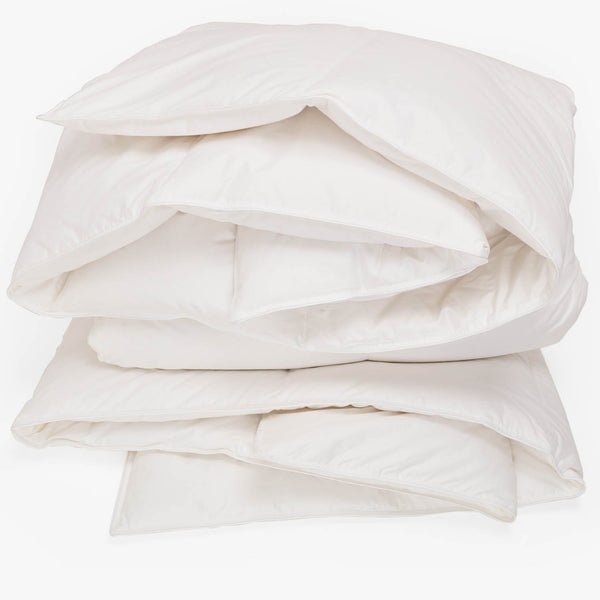 Care instructionsTo ensure the maximum benefit from your down products please follow our simple instructions: Pillows and comforters should always be used inside a cover. • Pillows should always have a protector in addition to a cover. Comforters may be spot cleaned for spills with a mild detergent and aired out as needed. • While frequent washing is not advised, down may be washed or dry cleaned. We recommend a maximum of 1-3 washes per year. • Dry cleaning should be only performed by a company that is experienced with down products, as dirty cleaning fluid will cause the down to clump, lose its lofting ability and occasionally develop a mild odor. • We recommend washing only in a front-loading commercial capacity washer. Machines with agitators are too rough and will tear the baffles on comforters. Use a low sudsing mild detergent or a product specifically designed for washing down products. NEVER use any bleaching agents or spot removing products as this can break down the feathers causing them to lose their lofting ability. Place down in a large capacity dryer on the lowest heat setting and dry for several hours. This step is very important because if down is not thoroughly dried, it may develop mold and or odors. NEVER dry on a high heat setting as this could also damage the down. Tennis balls or dryer balls may also be used when drying to help fluff and bring back the loft to the down as it dries.