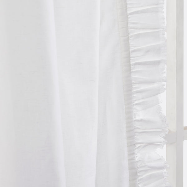 Embrace rustic elegance with the Bohemian Frayed Linen Curtain by abc home. Featuring a charming frayed edge, this beautiful curtain panel is crafted in a premium cotton and linen blend for a soft, natural texture and graceful drape that’s guaranteed to enhance your home ambiance. A versatile choice, designed to complement a variety of interior styles, from boho chic to modern farmhouse. Available in Natural and White, as well as 84", 96", 108", and 120" sizes. Made in India.
