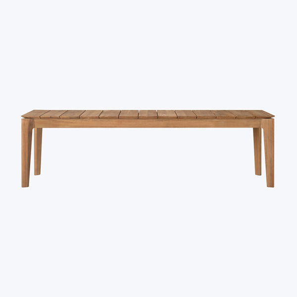 The Bok Outdoor Bench, crafted in Indonesia from solid teak, brings the sculptural elegance of the Bok collection outdoors with its graceful, airy design. Measuring 54" W x 14" D x 19.5" H, the bench's organic curves are reminiscent of a goat's curved horns, creating a sophisticated yet relaxed seating option. Its mocha finish enhances the natural beauty of the teak, while its versatile design allows it to complement the Bok Dining Table or serve as a standalone piece.Built to...