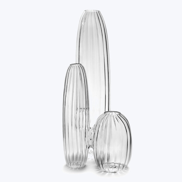 Merging the aesthetics of two contrasting worlds, the Bonseki Vase showcases unconventional and strict precision that creates an elegant, eye-catching centerpiece for your table. The delicate cluster form expresses an invitation to add an abundance or just simple a touch of color to your home. Fascinated by the contrasts between the East and the West, multi-award-winning Italian designer Denis Guidone has created a line of borosilicate glass structures for Serax that draws on the ancient Japanese arts of bonseki and...