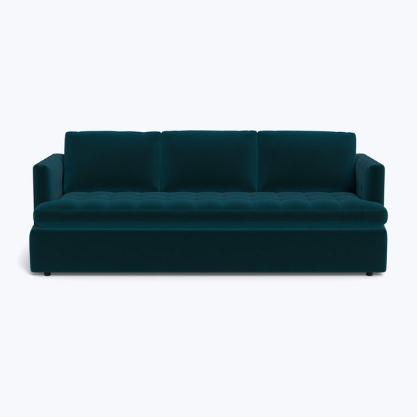 Sink into the lavish Boutique Queen Sleeper Sofa, an exclusive offering from abc carpet & home. This queen sleeper sofa effortlessly transforms from a clean-lined modern sofa to a full-size queen bed, making it the perfect solution for homes looking to host guests. The Boutique Queen Sleeper Sofa features a comfortable biscuit-tufted bench seat that unfolds into a spacious innerspring mattress, providing a restful night's sleep for your guests. The Boutique Collection showcases spring-down cushions made of soft foam and...