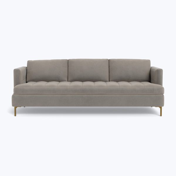 Exclusive to ABC Carpet & Home, the Boutique 88" Sofa is a perfect blend of timeless elegance and luxurious comfort. Its refined silhouette and brass legs create a striking focal point, elevating any room with serene sophistication. Whether used in a spacious living room or as a statement piece in a contemporary loft, this sofa exudes grace while offering exceptional comfort for everyday use. The Boutique Sofa features a beautifully crafted biscuit-tufted bench seat that invites indulgence and relaxation. The...