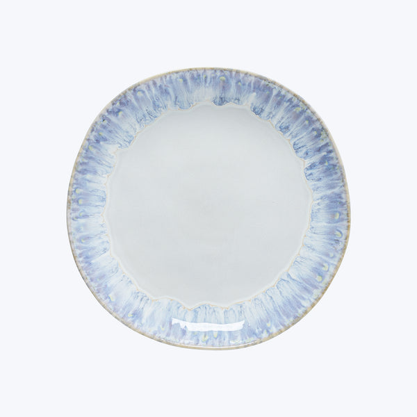 Made in Portugal, this Set of 6 Brisa Dinner Plates features a distinctive coastal style that adds light to your meal. The Brisa Collection transports us to the landscape of lagoons and sandy beaches stretching across deserted islands with its milky blend of white and blue glazes.