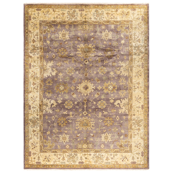 This brown traditional rug measures 9'4" x 12'3", offering a substantial size for various rooms. Crafted from 100% wool, this hand-knotted piece combines durability with a classic aesthetic. Its traditional design elements provide a refined foundation for living spaces or dining areas. The rug's 100% wool pile provides a soft texture underfoot while ensuring long-term resilience. Wool is a natural fiber known for its resistance to crushing and its ability to maintain its appearance over time. Each rug is hand-knotted...