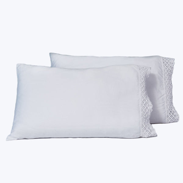 The Camilla Pillowcases from Signoria bring timeless Italian craftsmanship to your bedroom, beautifully enhanced with an elegant lace edge. Crafted from 100% Extra Long-Staple Cotton with 300 thread count sateen, these pillowcases are offered in a set of two, available in Standard and King sizes. The 1-inch lace flange adds a touch of sophistication, making these pillowcases a perfect addition to any luxury bedding ensemble.The Camilla Bedding Collection is a perfect blend of traditional luxury and contemporary design, featuring a...