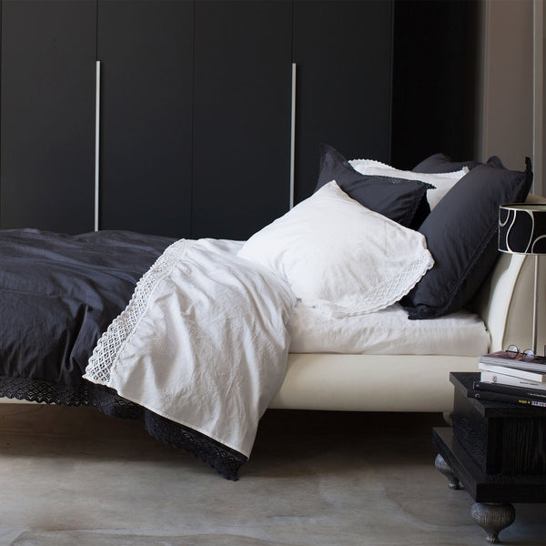The Camilla Shams embody the timeless elegance of Italian craftsmanship, seamlessly blending tradition with modern refinement. Featuring an intricate 1-inch lace flange, these shams reimagine classic bed linens with a contemporary touch. Crafted from 100% extra long-staple cotton sateen with a luxurious 300 thread count, the Camilla Bedding Collection offers an exquisite softness and subtle sheen.A special garment-dyeing process ensures each piece is one-of-a-kind, while expert Italian finishing techniques create a vintage-inspired look that softens beautifully with every wash. Choose...