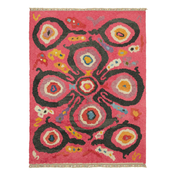 Whimsical in its reinterpretation, this Carnaby Moroccan Style Rug - 7'11'' x 10'8'' masterfully recreates a vintage psychedelic ikat pattern into a playful canvas of bright colors. This one-of-a-kind colorful Moroccan style rug is a must-have for bohemian and eclectic spaces. Moroccan rugs like this hand-knotted rug are highly prized for their plush wool pile and rich texture that make walking barefoot a delight.