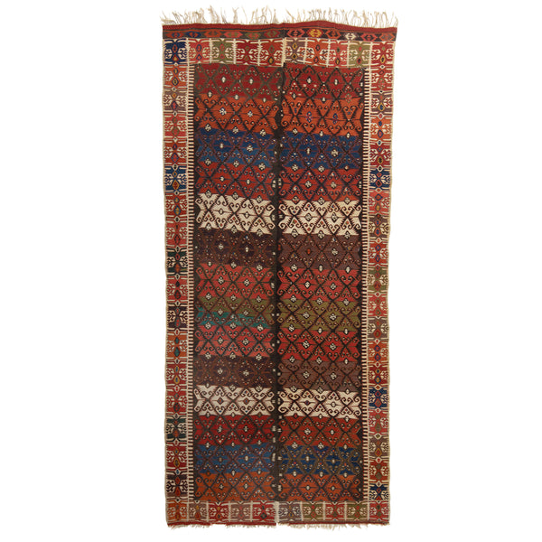Multicolored Vintage Wool Kilim Rug - 5'7" x 13'3"