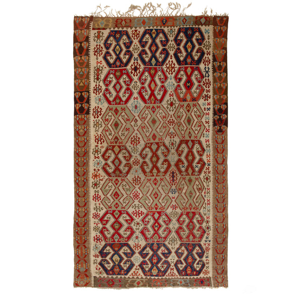 Brown Multicolored Vintage Wool Kilim Rug - 6'1" x 13'