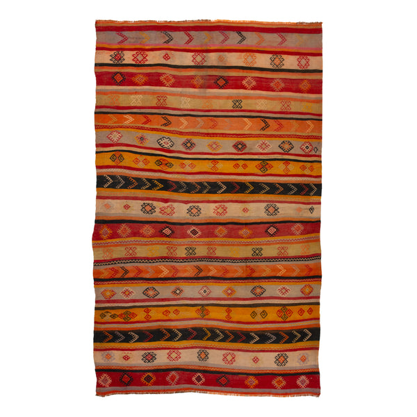 Red & Orange Vintage Wool Kilim Rug - 6'5" x 11'2"