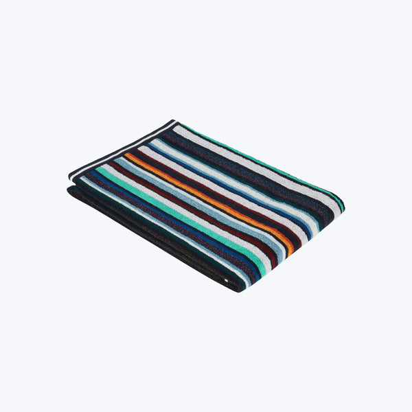 Turn your bathroom into an at-home spa oasis with this selection of Chandler Bath Towels from Missoni Home. Interwoven with a shiny metallic Lurex thread, these hand towels, bath towels, and bath sheets feature an intricate multicolored striped pattern that is sure to catch the eye with its modern style. The bath sheet's large size and fluffy soft velour allow it double as the perfect beach towel that's comfortable to lie on while the other terry side dries the skin...